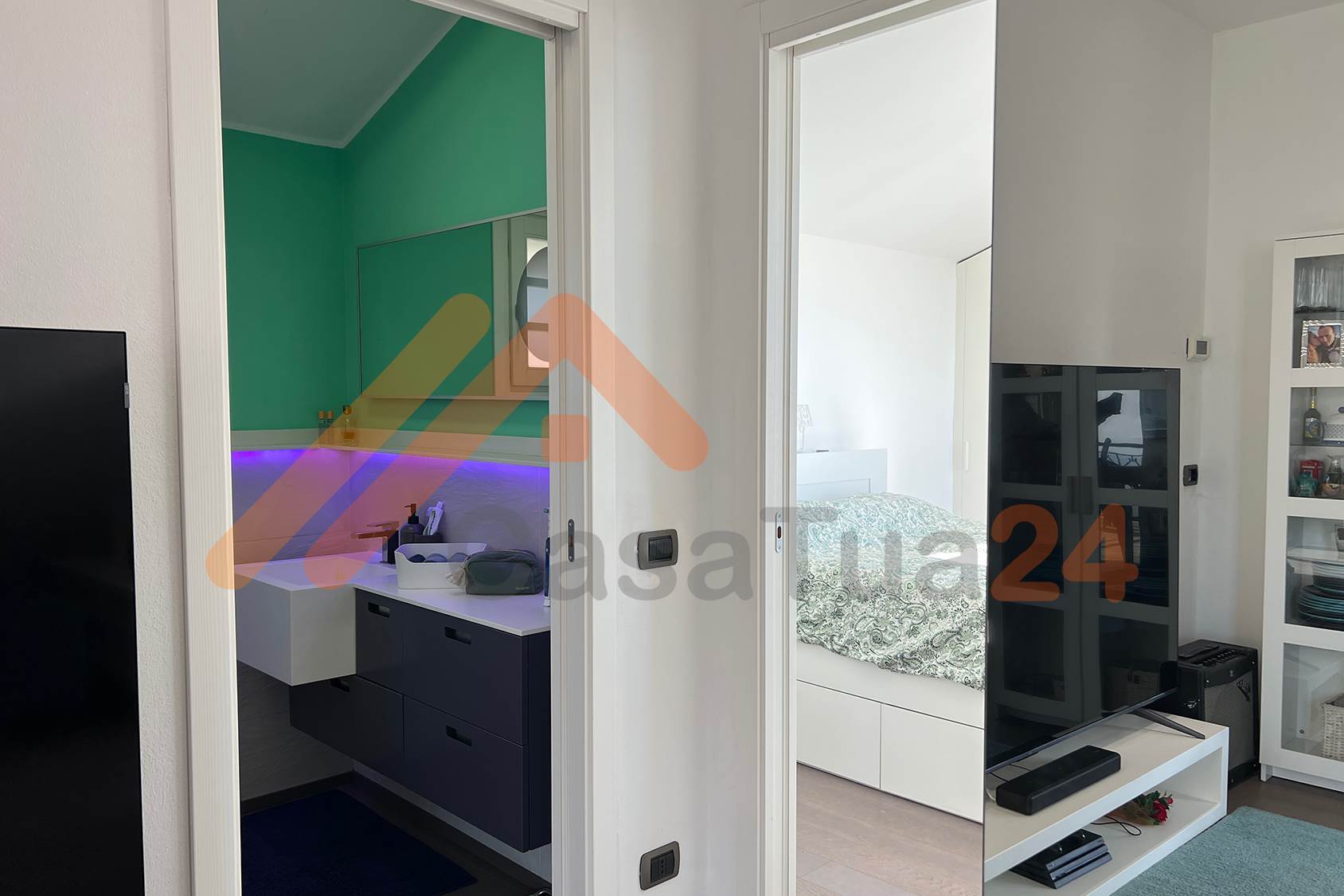 La zona living, ampia e luminosa, unisce soggiorno e cucina a vista in uno spazio accogliente e conviviale. La camera matrimoniale è intima e rilassante; il bagno, completo di doccia, è funzionale e ben curato. Tutti gli ambienti sono ariosi e ben distribuiti, regalano scorci unici ed una costante sensazione di benessere e tranquillità.